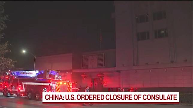 ▲美國要求中國大陸駐美休士頓總領事館於 3 天內關閉撤離,館內已開始焚燒文件。(圖/翻攝自 Bloomberg Politics YouTube 影片截圖)