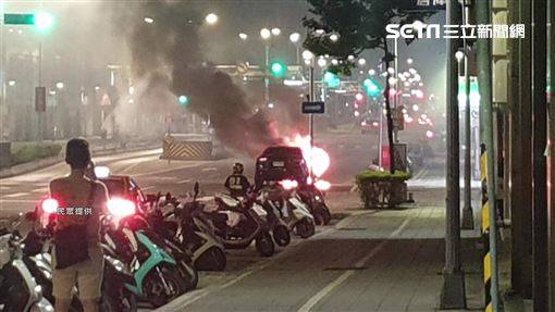 ▼▲瑪莎拉蒂當街起火燃燒。(圖/民眾提供)